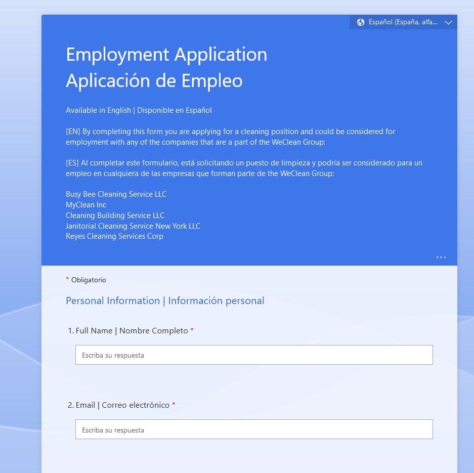 Si estas en Chigaco o Nueva York, puedes aplicar para limpiador llenando este formulario.