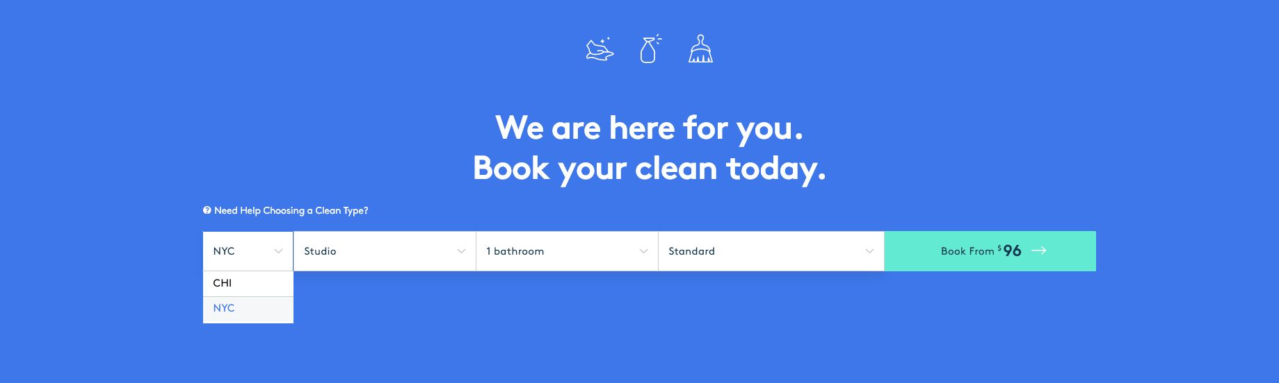 La presencia o no en el espacio durante su cita de limpieza depende de usted. Cuando hagas la reserva, se te pedirá que les des instrucciones para entrar. Si tienes portero o puedes esconder una llave en algún sitio, no hace falta que estés en casa. O si lo prefieres, puedes quedarte durante la limpieza (pero sigue las normas de distanciamiento social). Lo que le resulte más cómodo está bien.